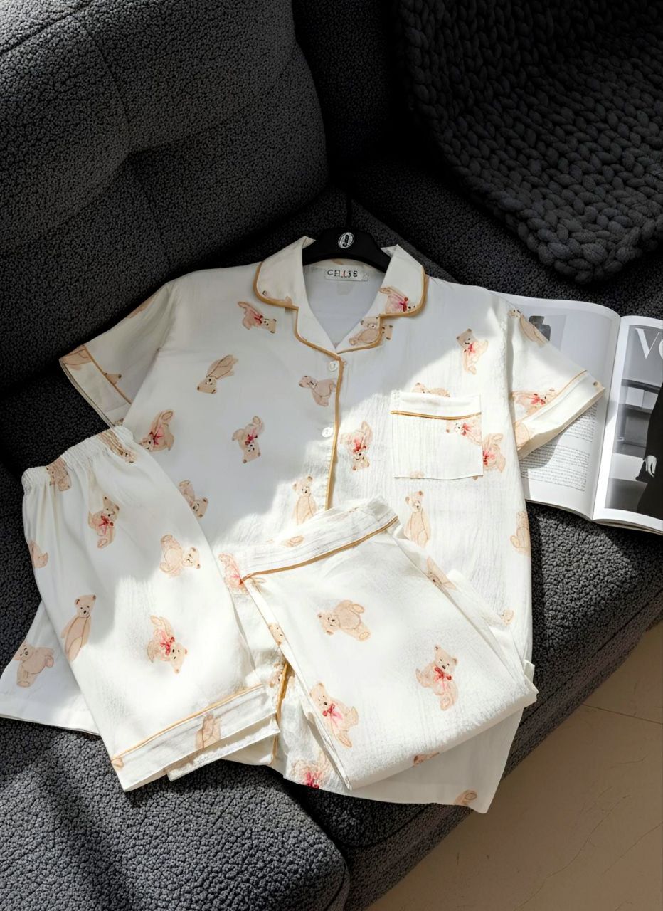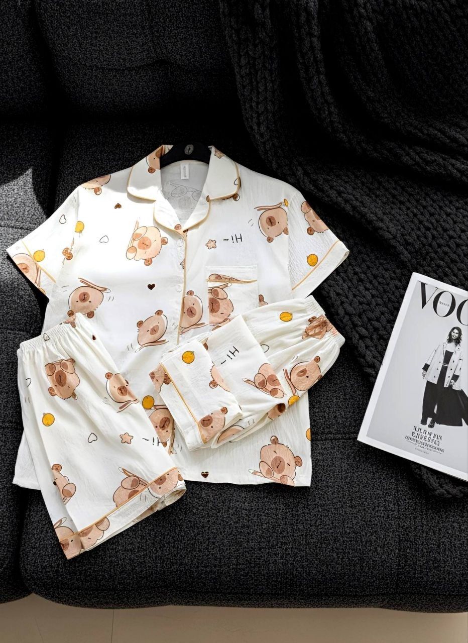 ست سه تیکه تیشرت شلوار شورتک زنانه جنس نخ موسلین وارداتی